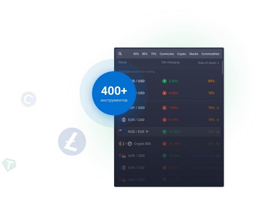 Speaking of tools. provides over 400 free tools to each client so that you can trade and earn money the way you like. Choose any assets: currency quotes, stocks, majors, metals, oil or gas, as well as the main trend of recent years - cryptocurrencies.
